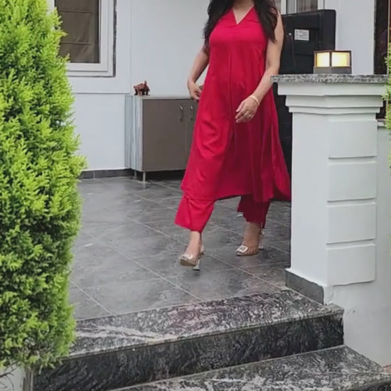 Elevate your everyday vibe with this flowy red sleeveless kurta palazzo set, blending premium rayon cotton comfort with instant OOTD inspo for effortless style.